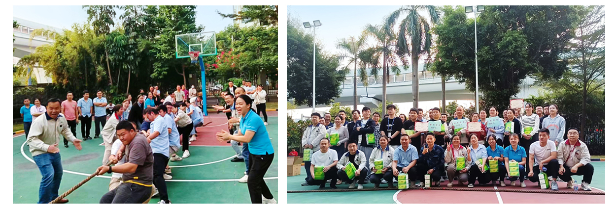 比賽前,參賽隊伍紛紛排兵列陣,不斷調整人員站位,強調身體姿勢及發力方式,場外觀賽的同事們似乎也按捺不住心中的激動,一個個摩拳擦掌、躍躍欲試。隨著裁判的一聲哨響,雙方參賽隊員卯足了勁,將力量擰成一股繩,伴隨著“一二一二”的口號聲,壓低身姿、扎穩馬步,在來回的拉鋸戰中齊心協力,為了團隊榮譽奮力拼搏。未參賽的同事們在一旁自發地組成啦啦隊,為全力以赴的參賽隊員們吶喊助威,現場氣氛激烈而緊張,哨子聲、加油聲、歡呼聲此起彼伏。
